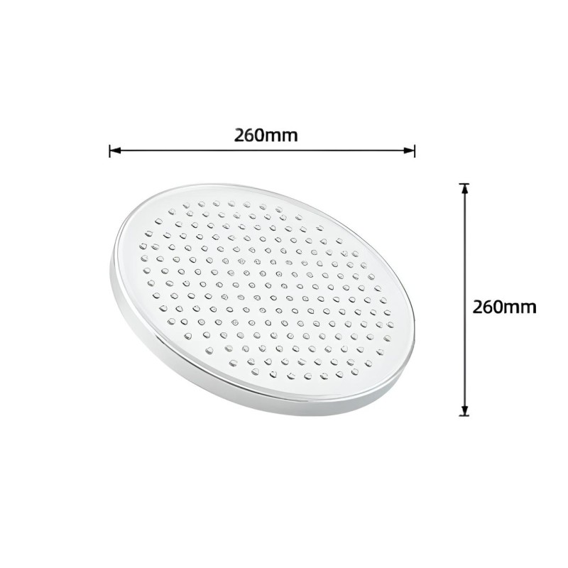 • Діаметр душового диску 260 мм: Комфортний розмір душового диску забезпечує повне покриття, а також рівномірний та розслаблюючий потік води.