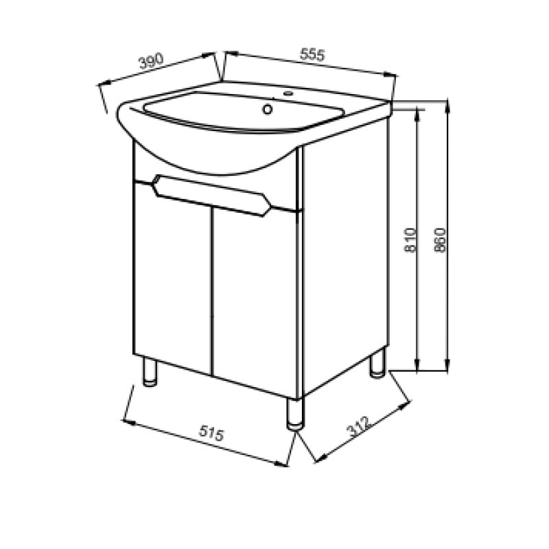 Тумба Естель 55 Т-1 з умивальником "CERSANIA"
