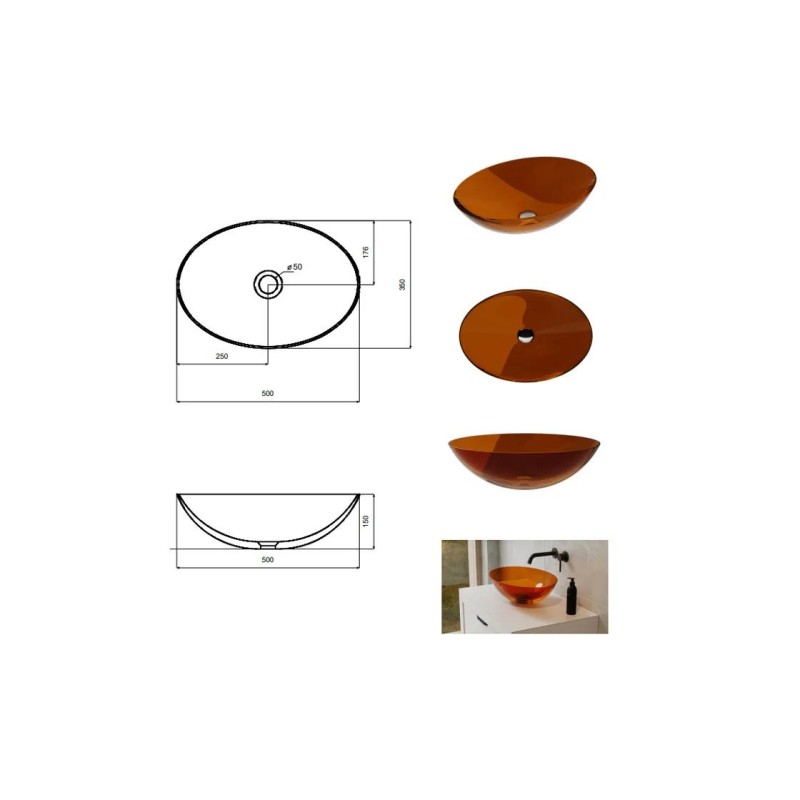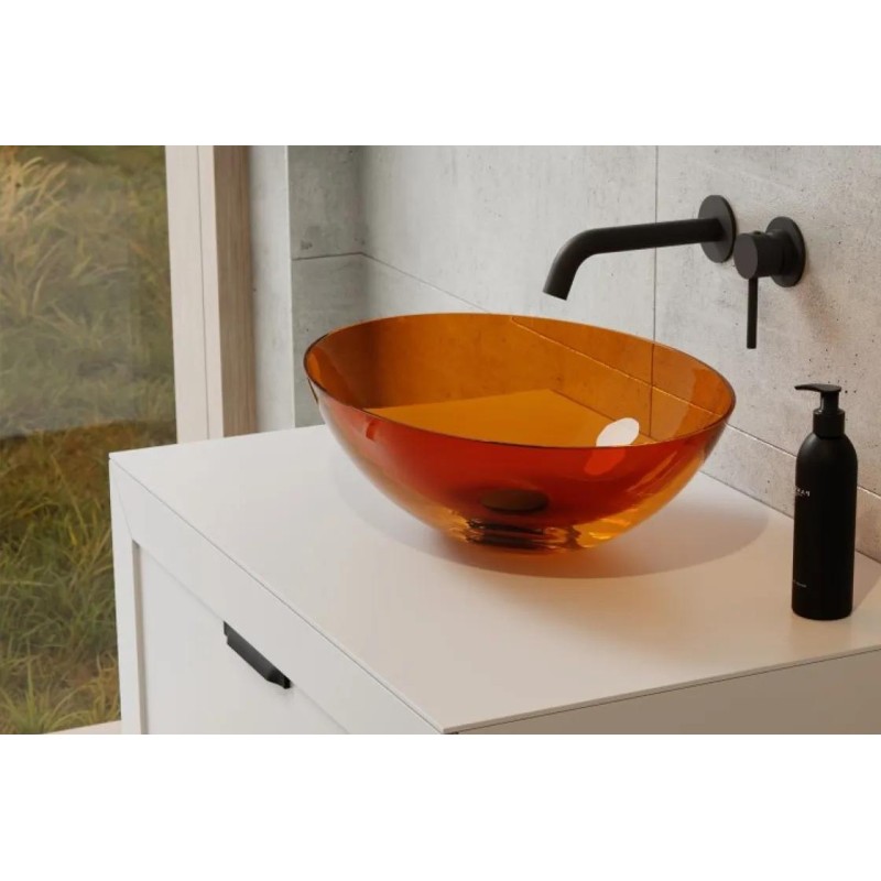 Умивальник накладний ANYA виготовлений з матеріалу ResiCast, який дозволяє створювати неймовірно красиві моделі з дуже тонкими краями, зберігаючи при цьому свою функціональність. Матеріал являє собою суміш синтетичної смоли з добірними пігментами, що забарвлюють масу, з якої відлиті вироби. Відрізняється прозорістю та ідеально гладкою поверхнею.