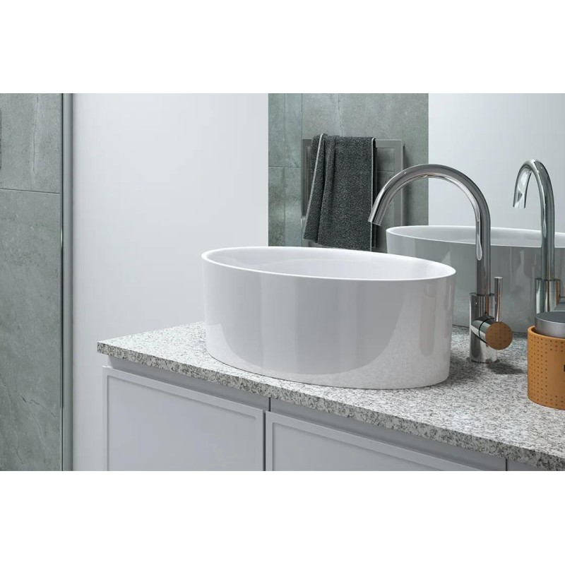 Умивальник на стільницю Uniqa виготовлений за технологією Mineral DuraBe - мінеральне лиття, яке є сумішшю натуральних каменів (таких як мармур або граніт) і смоли, характеризуються ідеально гладкою, непористою поверхнею з дуже високою міцністю та стійкістю до зміни кольору.