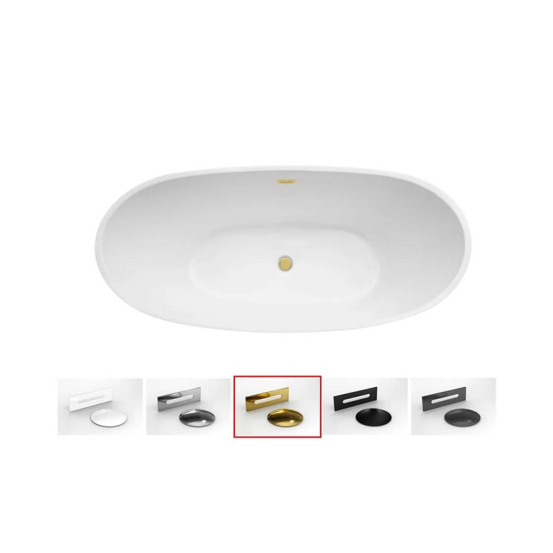 - Кришка сифона та переливу доступна у варіантах: золото, матово чорний, білий або металевий.