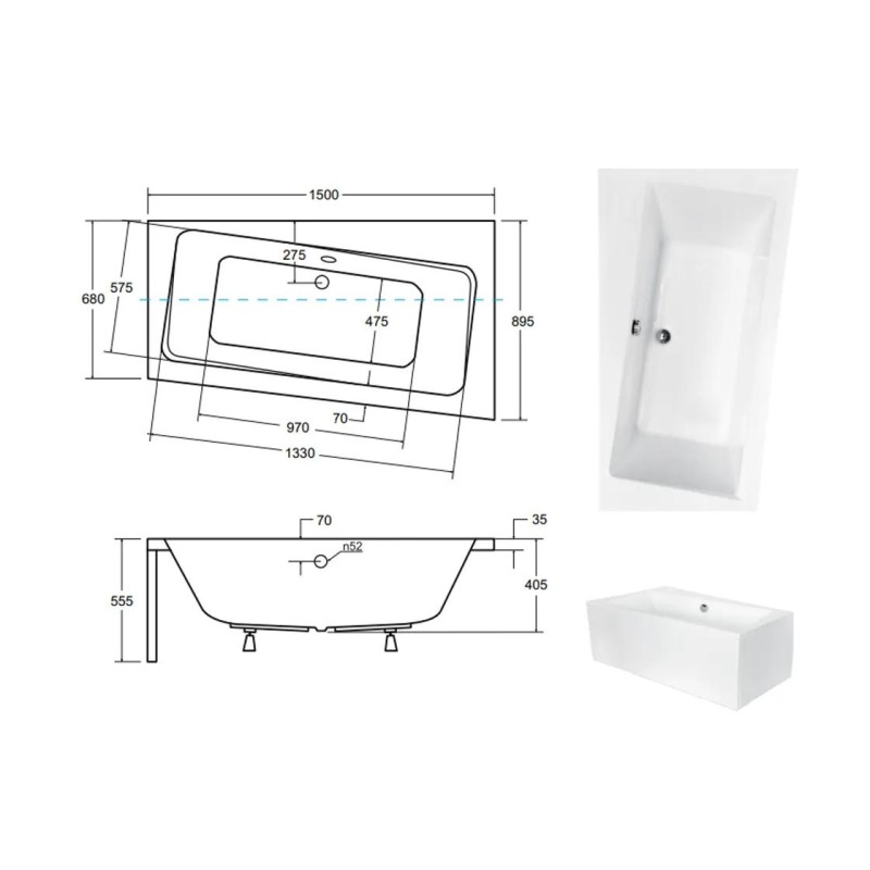 Об’єм ванни - 160 кг., вага - 19 кг. Додатково комплектується обудовою, ніжками та сифоном.