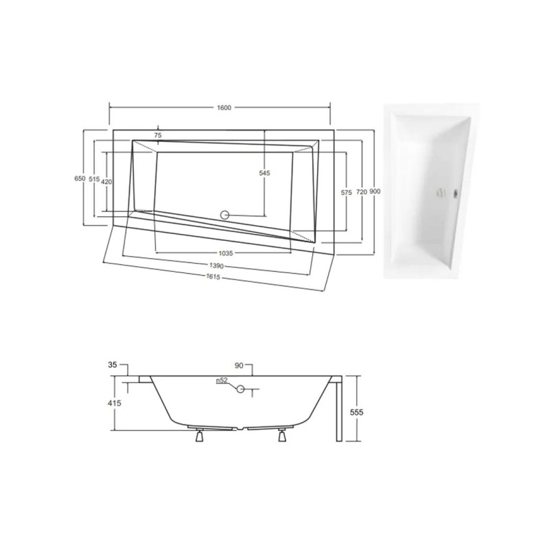 Ванна акрилова INTIMA 160x90 Права (соло) без ніг