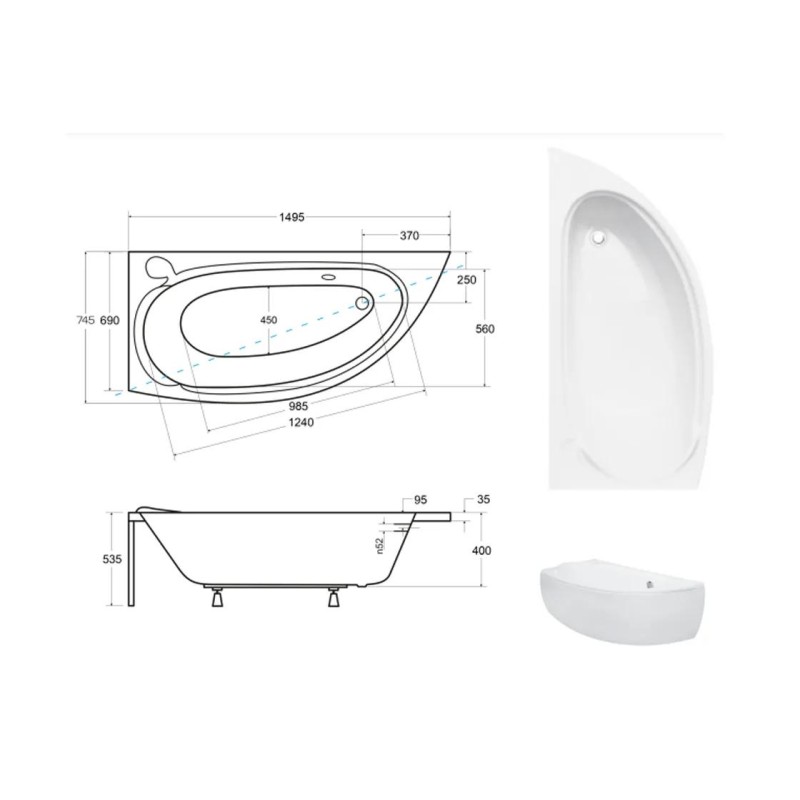Ванна акрилова MINI 150x70 Ліва (соло) без ніг
