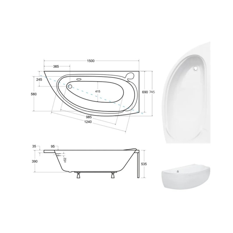 Ванна акрилова MINI 150x70 Права (соло) без ніг