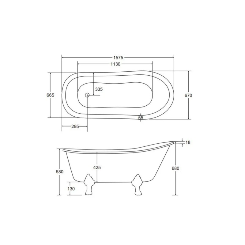 Ванна акрилова OLAYA ретро 160х68 з ногами хром без сифона