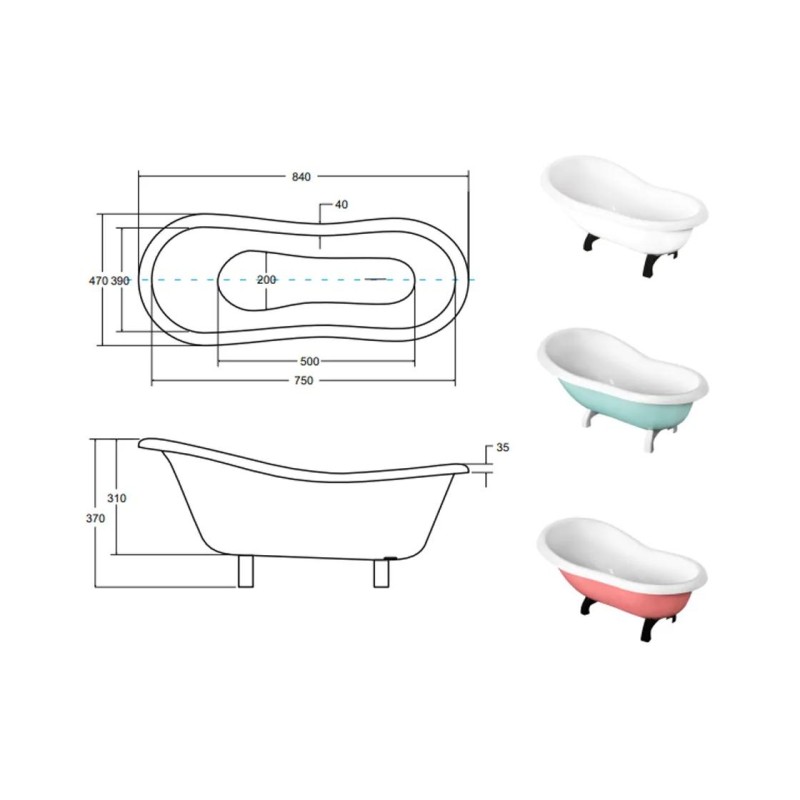 Ванна акрилова OTYLIA BABY ретро 85х47 з ногами білими