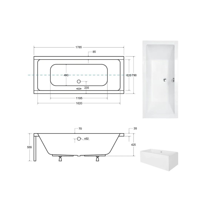Ванна додатково комплектується обудовою, ніжками та сифоном.