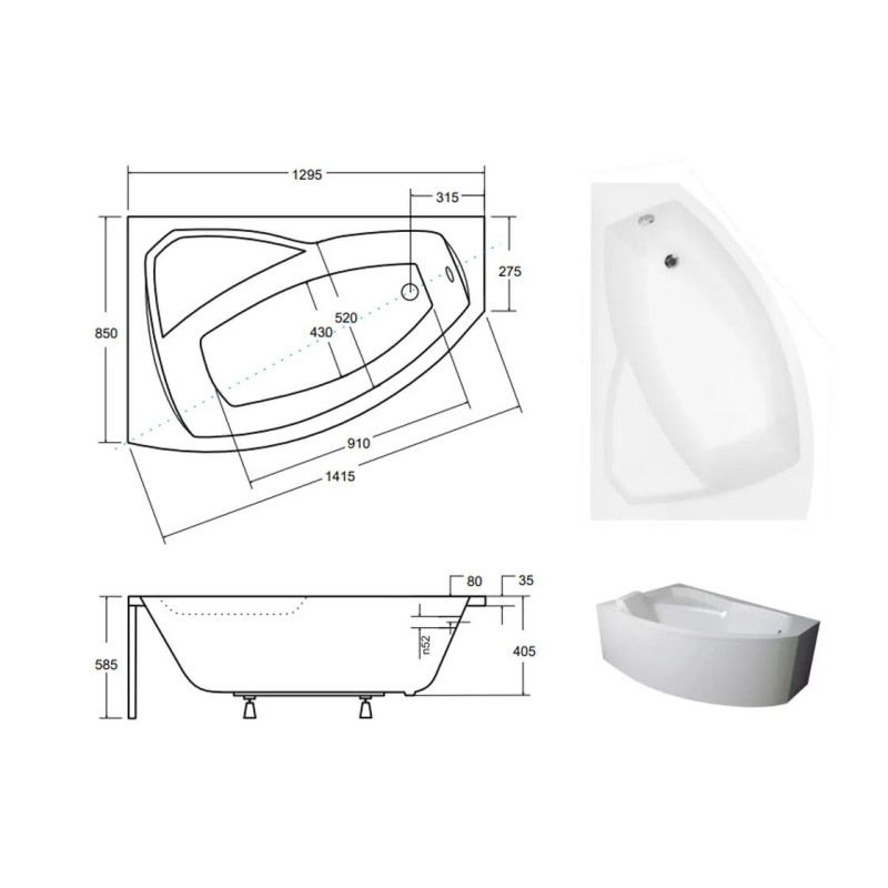 Ванна акрилова RIMA 130х85 Ліва (соло) без ніг