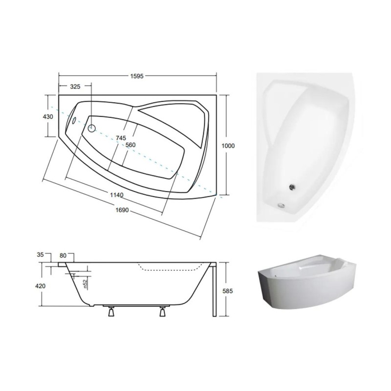 Ванна додатково комплектується обудовою, ніжками та сифоном. Підголівник за бажанням докупляється окремо.