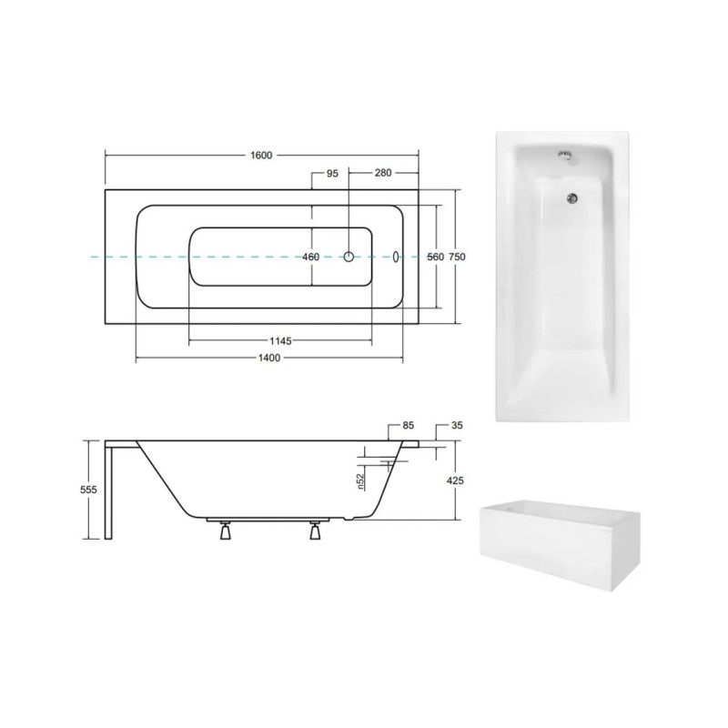Товщина акрилу на бортах: 4-5 мм. Ванна додатково комплектується ніжками.