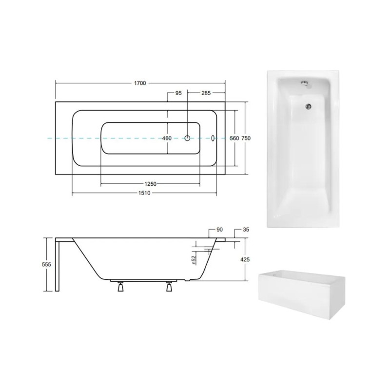 Товщина акрилу на бортах: 4-5 мм. Ванна додатково комплектується ніжками та декоративною панеллю.