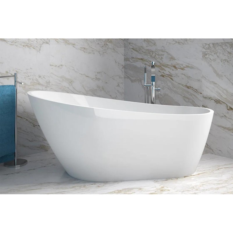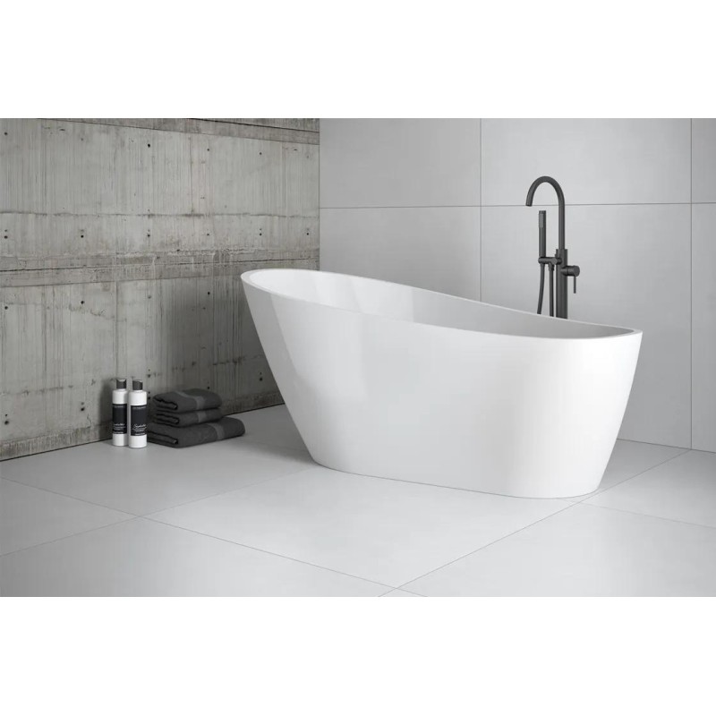 Ванна вільностояча білого кольору. Комплектується сифоном клік-клак з тонким прямокутним переливом в золотому кольорі. Об'єм ванни: 250