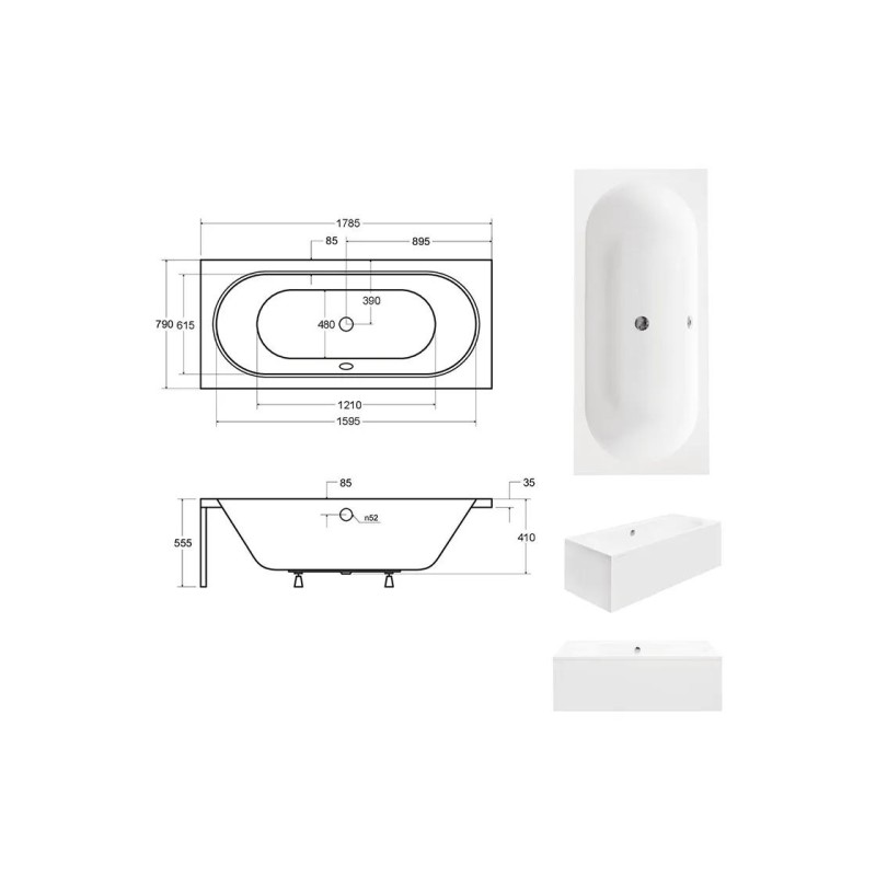 Ванна акрилова VITAE 180х80 (соло) без ніг