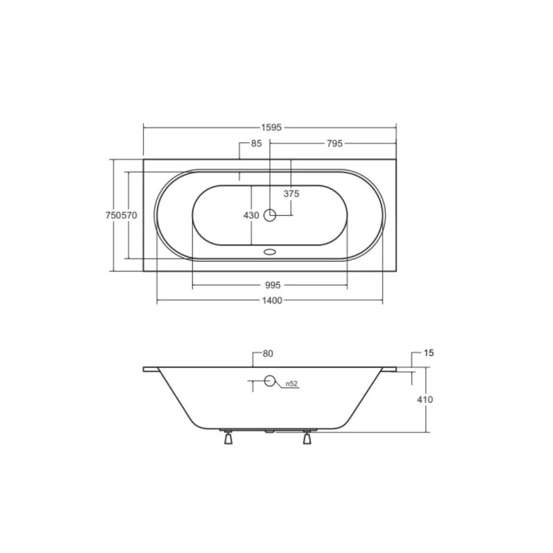 Ванна акрилова VITAE SLIM 160х75 (соло) без ніг