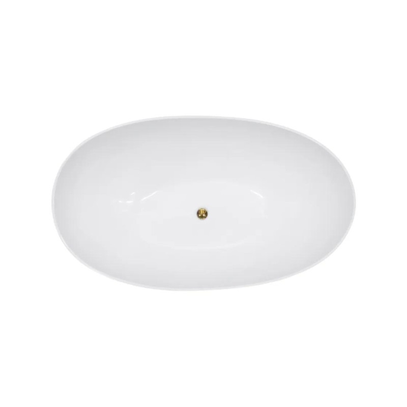 Вільностояча біла ванна SIYA 172х100 з сифоном клік-клак з верхньою очисткою в золотому кольорі. Виготовлена за технологією Mineral DuraBe - мінеральне лиття, яке є сумішшю натуральних каменів (таких як мармур або граніт) і смоли, характеризуються ідеально гладкою, непористою поверхнею з дуже високою міцністю та стійкістю до зміни кольору.