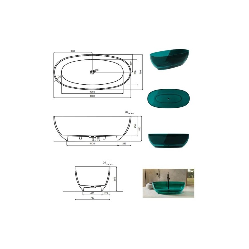 Ванна комплектується сифоном клік-клак в кольорі хром. Об'єм ванни: 380 л