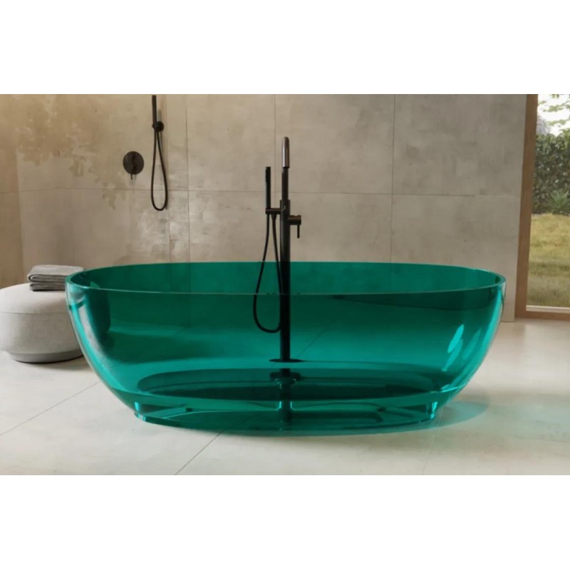 Ванна MEXA вільностояча виготовлена з матеріалу ResiCast, який дозволяє створювати неймовірно красиві моделі з дуже тонкими краями, зберігаючи при цьому свою функціональність. Матеріал являє собою суміш синтетичної смоли з добірними пігментами, що забарвлюють масу, з якої відлиті вироби. Відрізняється прозорістю та ідеально гладкою поверхнею. Матеріал з теплоізоляційними властивостями, завдяки яким тривалий час зберігає температуру води та стійкий до УФ-випромінювання.