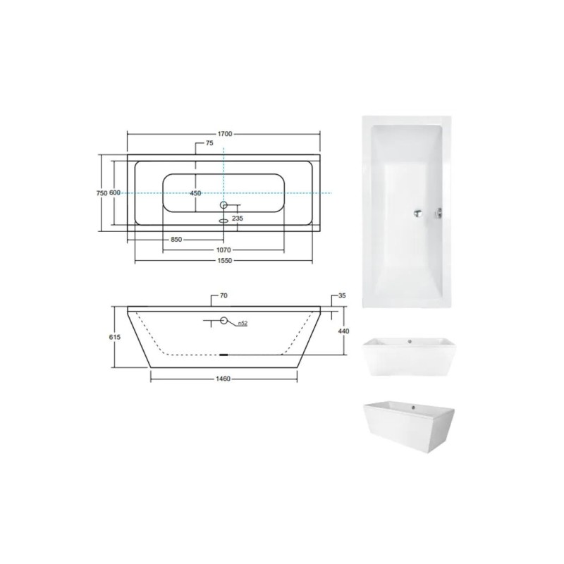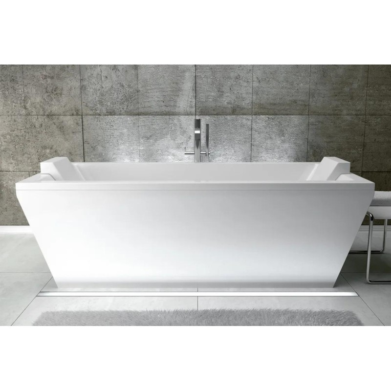 Ванна вільностояча білого кольору, в комплекті з сифоном Alcaplast з тонким переливом з верхньою очисткою хром. Об'єм ванни: 185 л