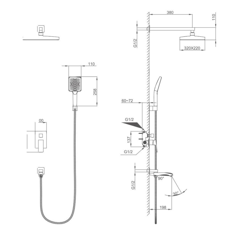 - Тропічний душ F025-32 (320x220 мм) створює ефект природного дощу, забезпечуючи приємний та розслабляючий душ.