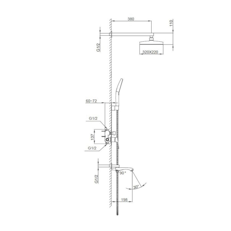 • Тропічний душ F025-32 (320x220 мм) створює ефект природного дощу, забезпечуючи приємний та розслабляючий душ.