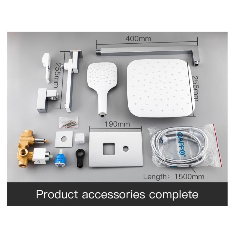 Вбудована душова система GAPPO G7117-8, вилив - перемикач на лійку, 3-функції, білий/хром