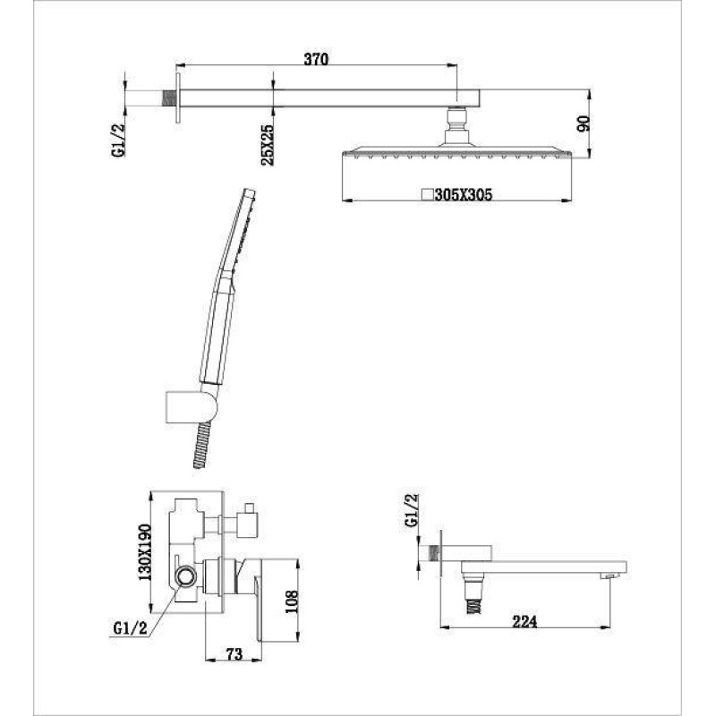 Вбудована система для душу GAPPO G7199-20 з 3-функціями, вилив - перемикач на лійку