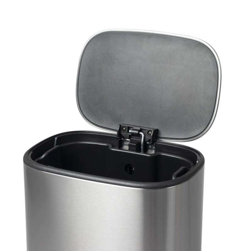 Відро для сміття з плавним закриттям овальне MIXXUS PREMIUM модель DIVERSE-TC0112 SS COLOR має розмір 425x302x255 мм. Відро для сміття виготовлено з високоякісної нержавіючої сталі, оснащено металевою педаллю для відкривання кришки і внутрішнім пластиковим відром. Нижня основа відра має ущільнення. Об'єм виробу становить 12 л. Поверхня відра оброблена за спеціальною технологією, що захищає від відбитків пальців та забруднень. Кришка відра закривається плавно та без шуму.