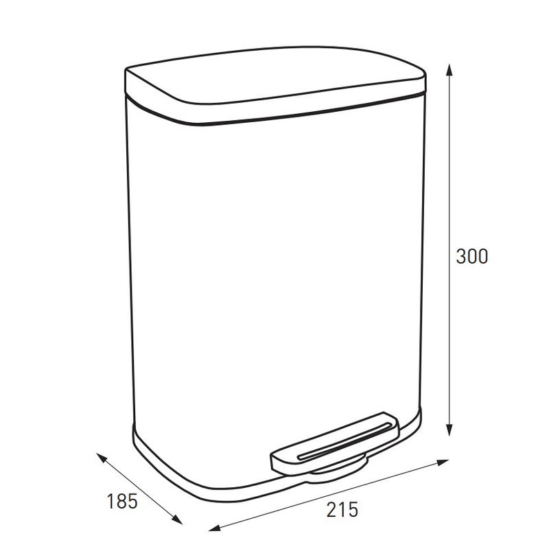 Відро для сміття з плавним закриттям прямокутне MIXXUS модель BEVEL-TC0105 SS COLOR має розмір 30x215x185 мм. Відро для сміття виготовлено з високоякісної нержавіючої сталі, оснащено металевою педаллю для відкривання кришки і внутрішнім пластиковим відром. Нижня основа відра має ущільнення. Об'єм виробу становить 5 л. Поверхня відра оброблена за спеціальною технологією, що захищає від відбитків пальців та забруднень. Кришка відра закривається плавно та без шуму.