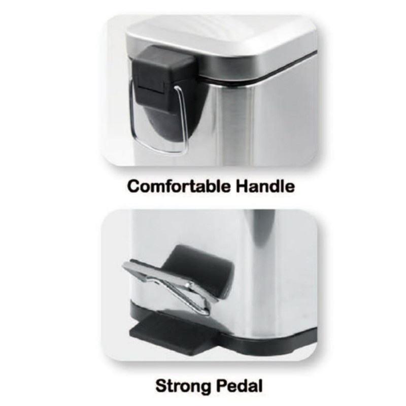 Відро для сміття з плавним закриттям прямокутне Zerix Sansa-TC0105 SS Color 5л колір нержавійка (ZX5893)