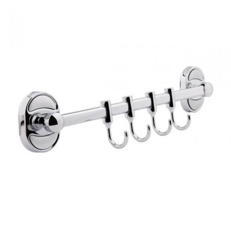 Вішалка для рушників Frap F1915-4 із чотирма рухомими гачками. Зручна, функціональна та практична. Зроблено якісно, з металу з хромовим напиленням. Чи не іржавіє, не втрачає колір з часом. Чи не займає багато місця.