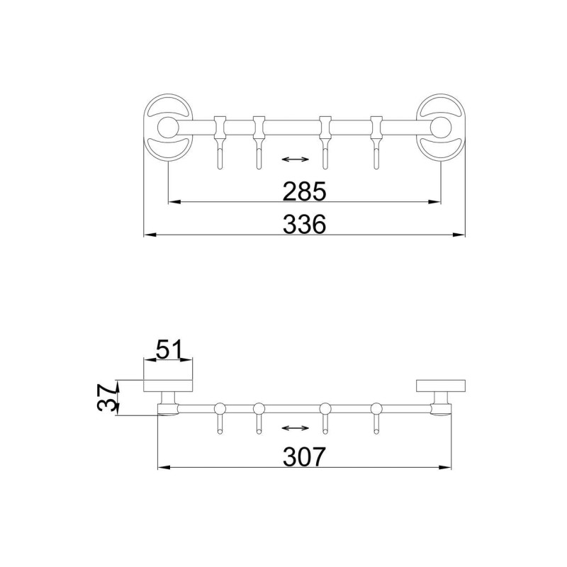 Вішалка Frap F1915-4 на 4 рухомих гачка 310 мм, хром