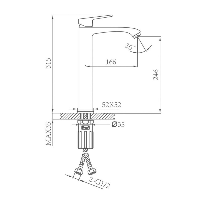Високий змішувач для умивальника FRAP F1076-29, латунь, збройова сталь