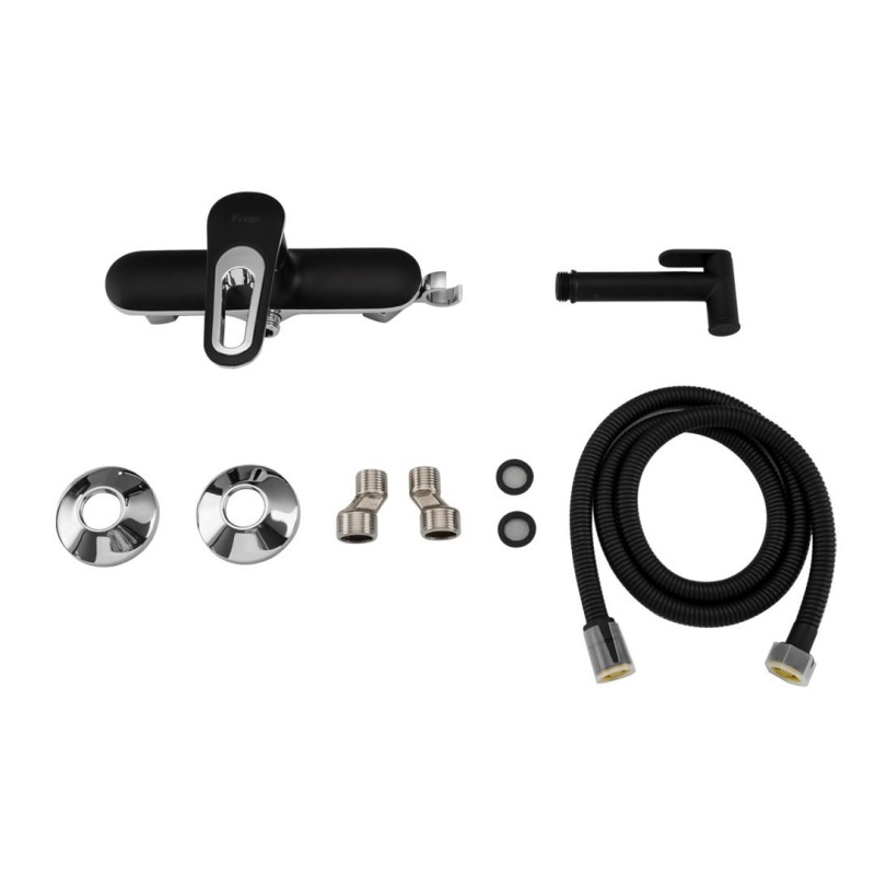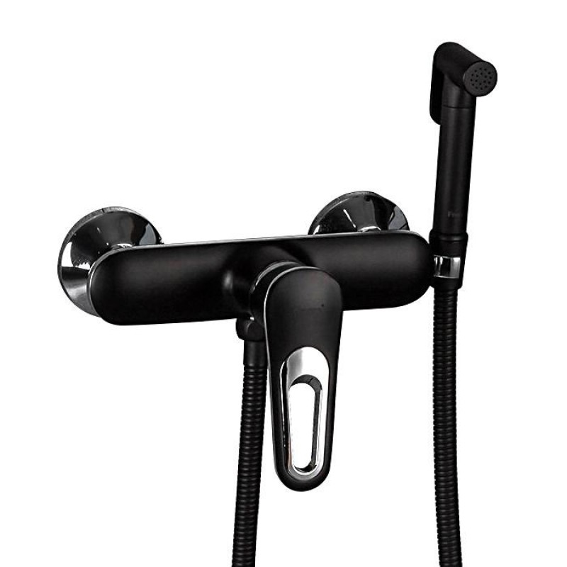 Змішувач для душ з гігієнічною лійкою Frap F2049-6, чорний/хром