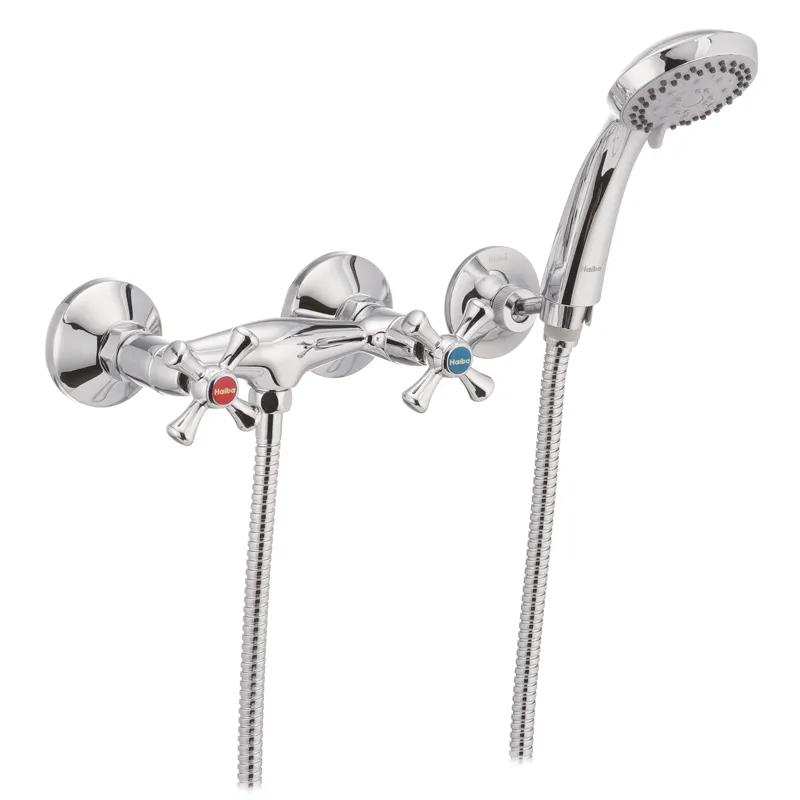 Двуручковий змішувач для душа Haiba Smes 003 (HB0364) має міцний корпус з латуні категорії А з хромовим антикорозійним покриттям. Для приємного зовнішнього вигляду він відполірований до дзеркального блиску. Закріплюється змішувач ексцентриками на трубах водопостачання. Ексцентрики закриваються декоративними чашками. Комплектація змішувача включає не тільки ексцентрики з декоративними чашками, але і ручну лійку, 150 см шланг, гумові прокладки і утримувач для лійки. В якості запірного елемента використовуються напівоборотні керамічні кран-букси.