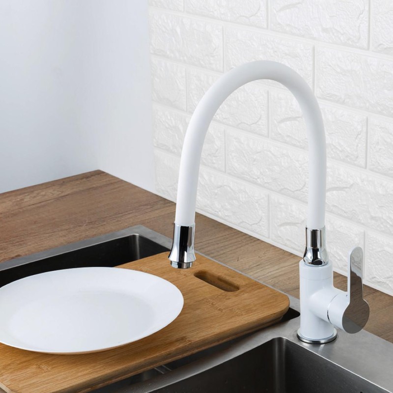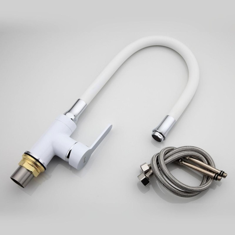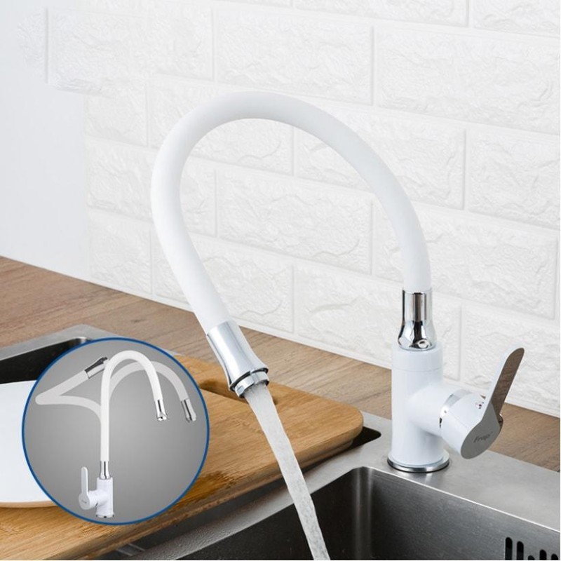 Змішувач для кухні Frap F4041 з гнучким виливом, білий/хром