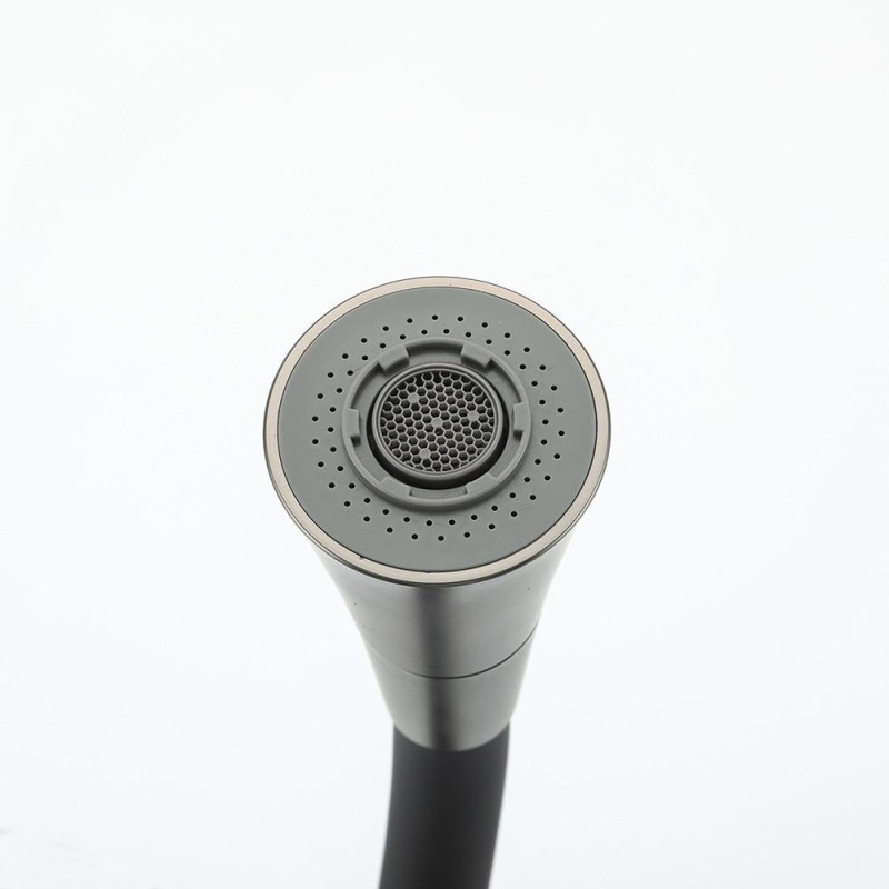 - Два режими : Змішувач оснащений аератором з двома режимами, дозволяючи вам вибрати між стандартним водяним потоком і функцією душу. Режим душу ідеально підходить для миття овочів та фруктів, наповнення великих посудин і легкого миття посуду в раковині.