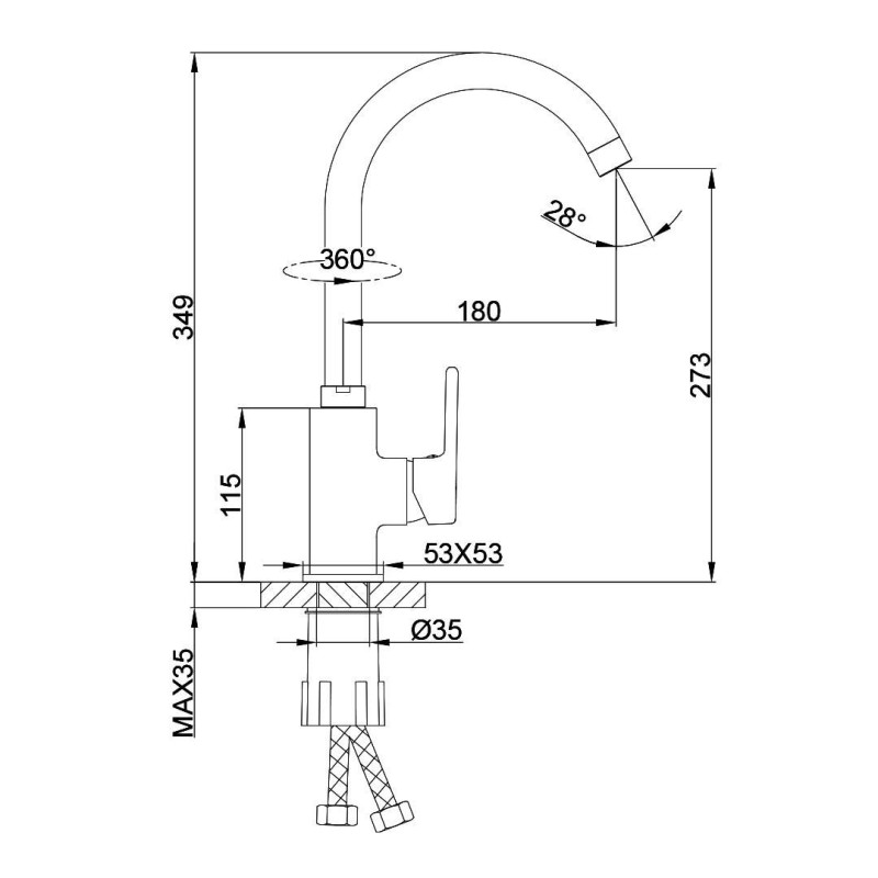 Кут повороту виливу 360 град.