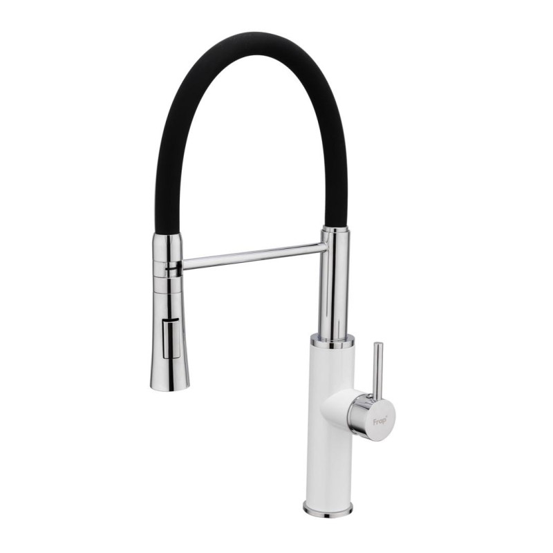 Змішувач для кухні Frap F4452-8 з гнучким виливом, 2 режими, біло/чорний
