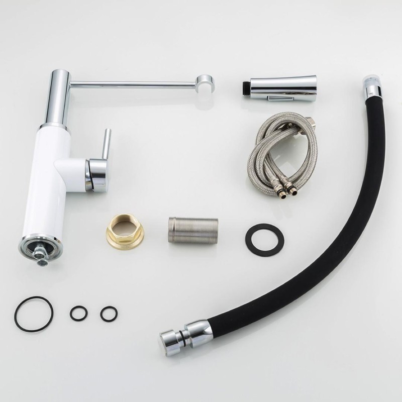 Те, якою буде ціна на кран для кухні FRAP F4452-8 з гнучким виливом, 2 режими, біло/чорний від виробника, багато в чому залежить від матеріалу, з якого його було зроблено. Найкращі та найдорожчі варіанти — це латунь або бронза, а також якісні стальні сплави. Бюджетні моделі роблять з силуминового сплаву, який служить менш за всі перераховані та є менш надійним. Для керування водним потоком можуть використовуватись механічні вентилі або картриджі з пластику. Іноді конструкція змішувачів термостати, сенсори та інше електронне обладнання.