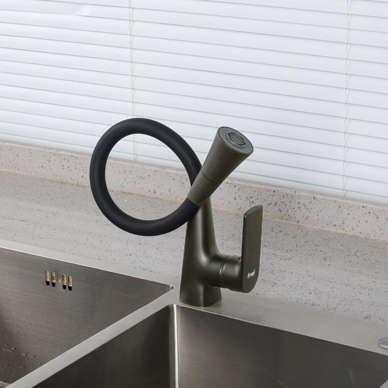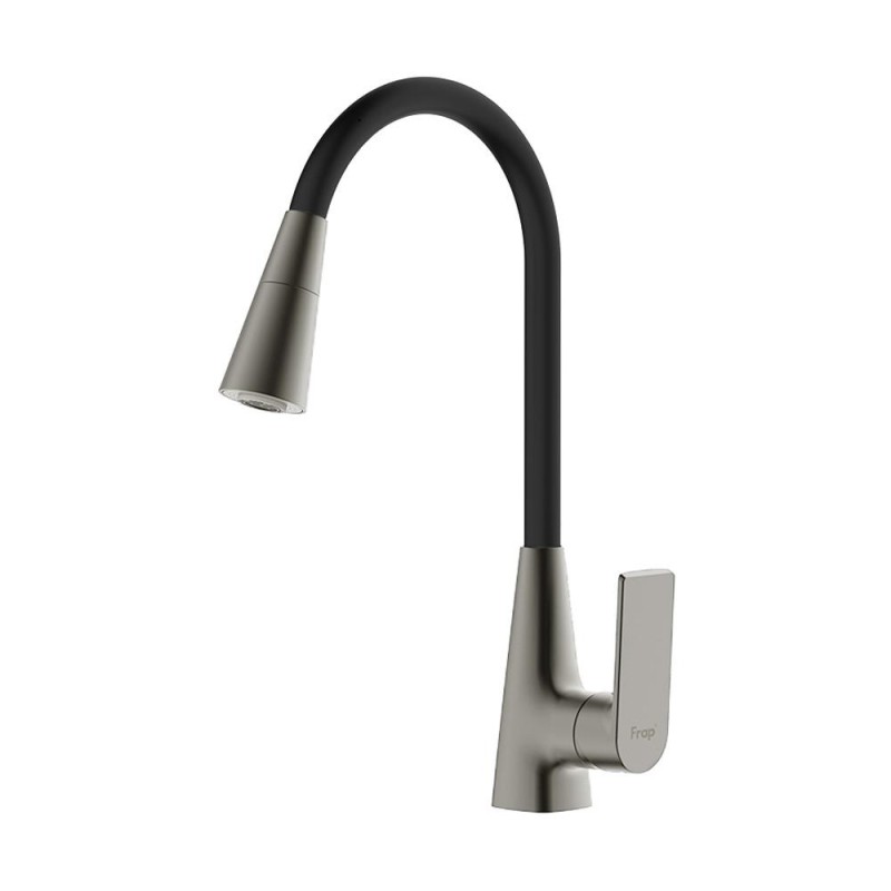 Змішувач для кухні FRAP F4471-9 силіконовий вилив, аератор 2 режими, латунь, Ø35, збройова сталь