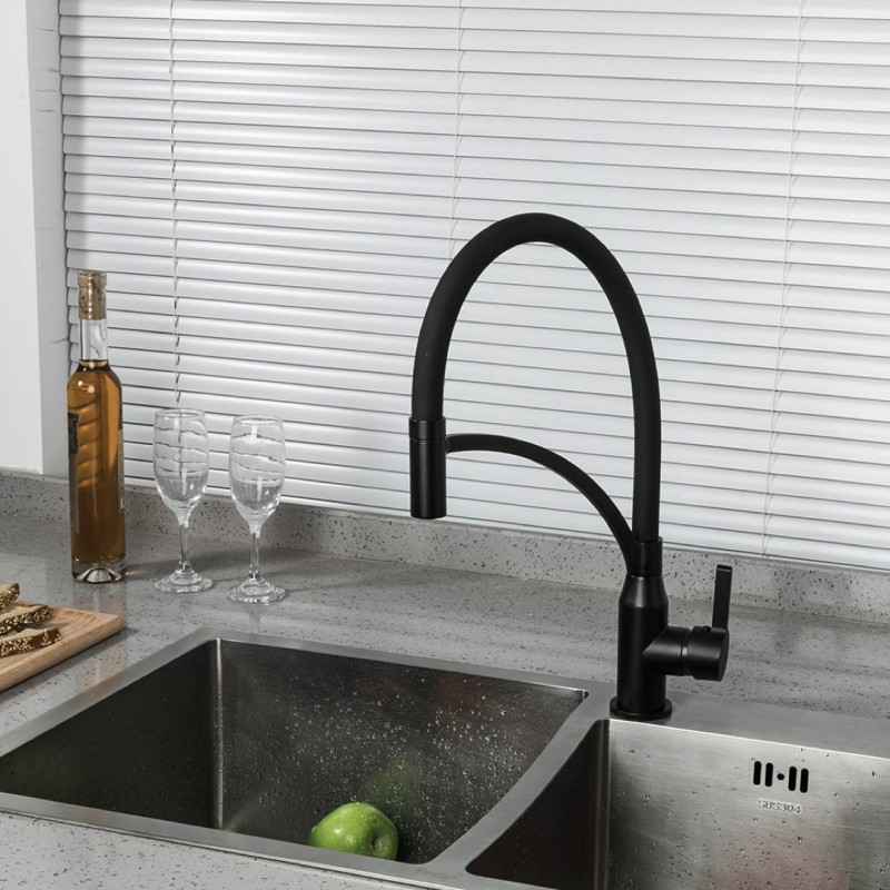 Змішувач для кухні Frap F4552-6 з гнучким виливом, чорний