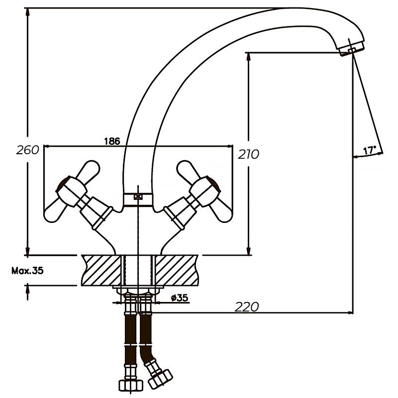 Корпус Haiba Dominox 273 виготовлений із латуні. Цей сплав має доступну вартість, при цьому має стійкість до корозії, здатний витримати практично будь-які умови експлуатації. Верхнє покриття – хром, забезпечує надійний захист основного матеріалу та надає Haiba Dominox 273 привабливості. Дизайн представленого двоважільного змішувача для кухні чудово підійде практично під будь-який стиль оформлення приміщення.