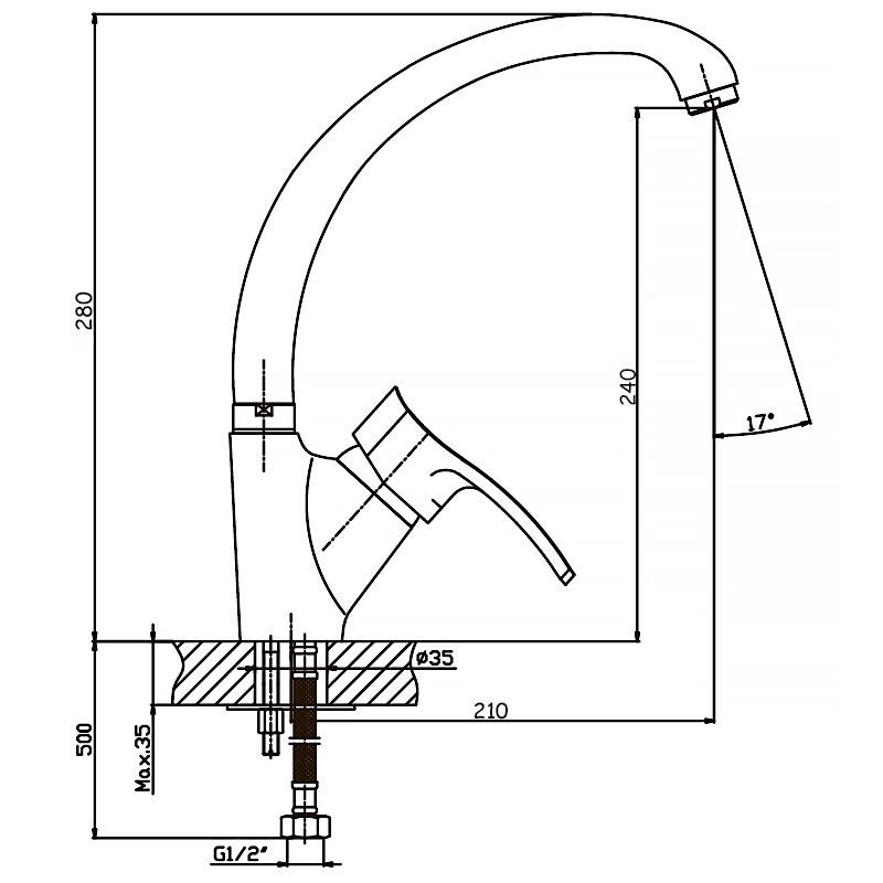 Висота змішувача (мм) 280