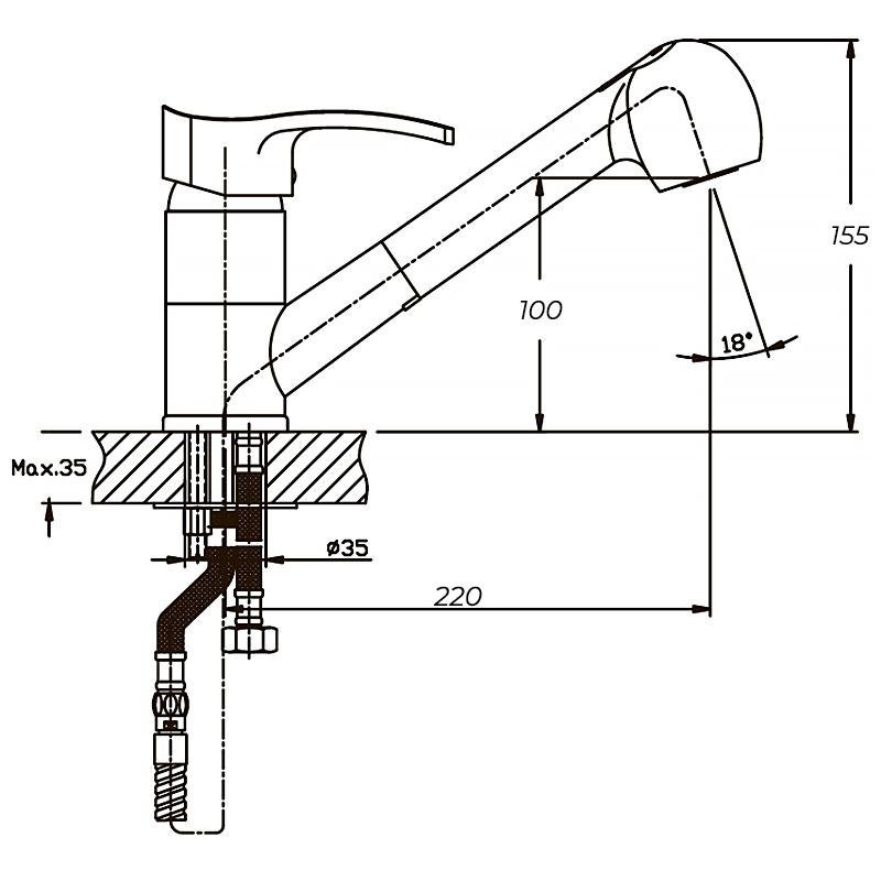 | Комплектація | 3 гнучких підводки, кріпильна шпилька, висувна лійка SH-21 (16 см) зі шлангом в металевому обплетенні |