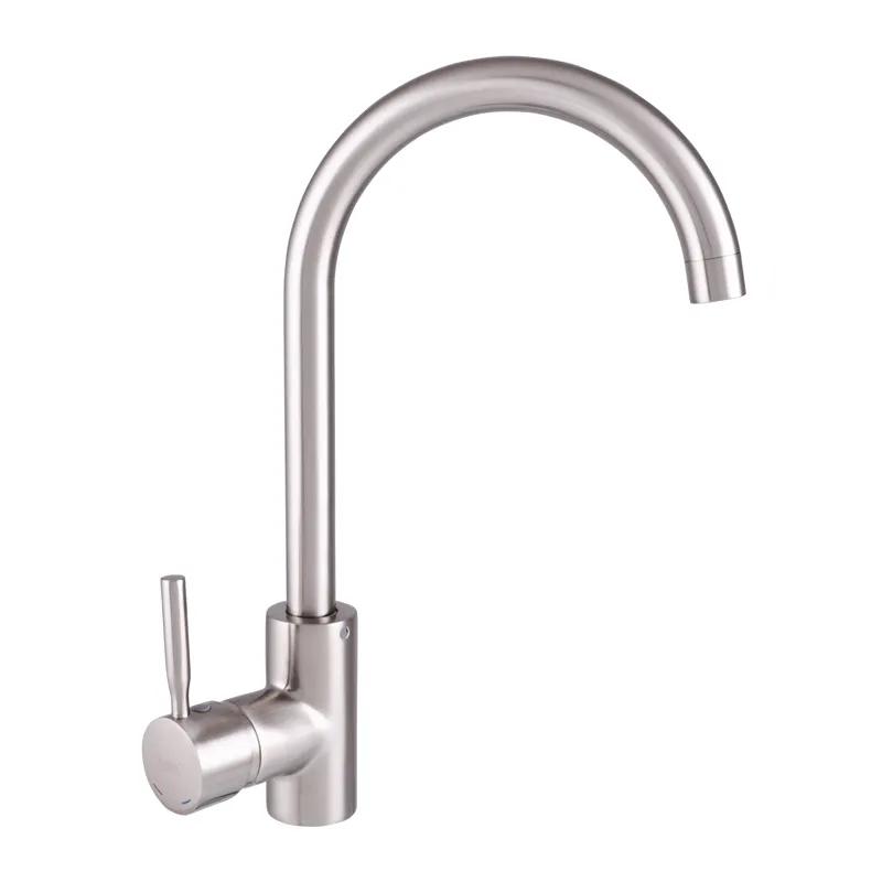 Змішувач для кухні Haiba Hans 011 (HB3916) має високий змішувач, зручний для миття будь-якого посуду, як в глибокій, так і в дрібній мийці. Вилив - поворотний, обертається на 360 градусів, оснащений замінним аератором. Корпус змішувача зроблений з сантехнічної латуні категорії А. Поверхня металевих частин стилізована під матову нержавіючу сталь. Кріплення проводиться на мийку або стільницю за допомогою різьбової шпильки і великий фігурної фіксує шайби. Монтувати можна як завгодно: з переднім, заднім, правим або лівим розташуванням керуючої ручки. Управління водою - одноручне, на основі керамічного картриджа. У комплект поставки входить два шланга для підключення гарячої та холодної води.