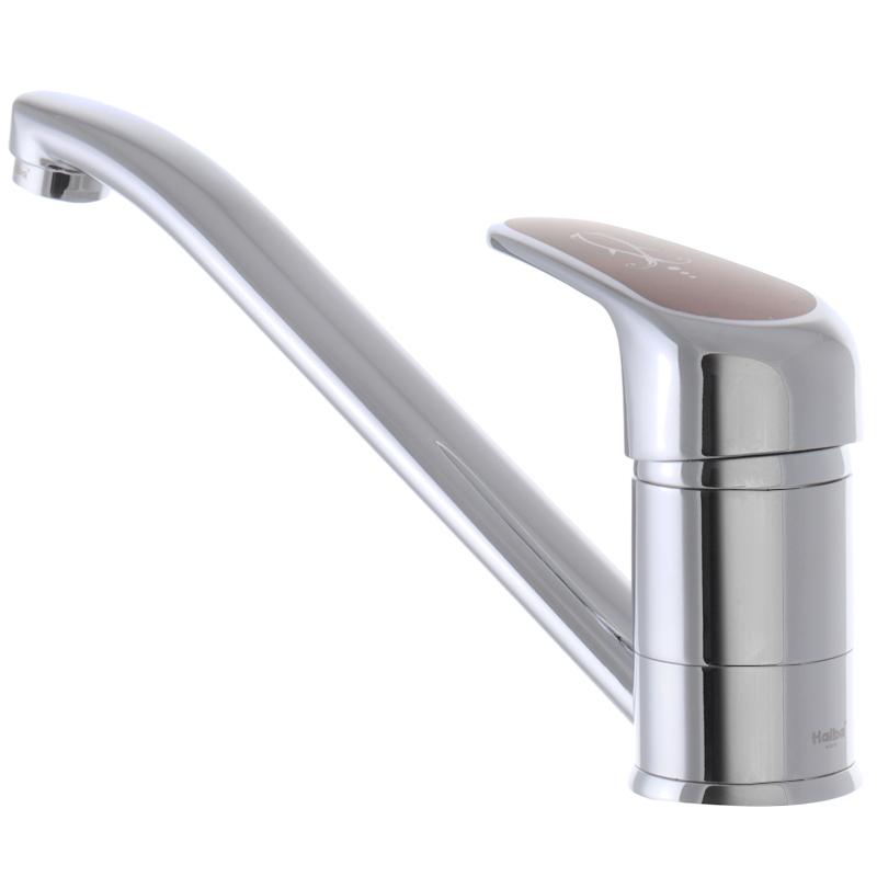 Змішувач на кухню одноважільний Haiba Magic 004 стане знахідкою для тих, хто шукає недорогу, але якісну сантехніку. Пристрій має традиційне виконання із поворотним гусаком. Форма та висота останнього є оптимальною для неглибокої мийки. Представлений кран змішувач для кухні виконаний з латуні. Цей матеріал відрізняється стійкістю до перепадів температур, не схильний до корозії. Декоративний шар – хром. Покриття забезпечує захист крана від пошкоджень та надає йому естетичної привабливості.