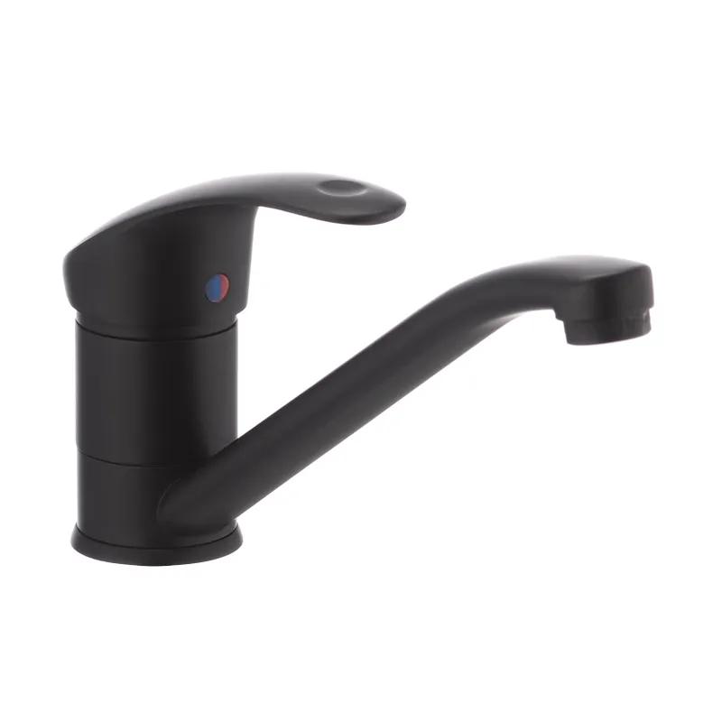 Одноручковий змішувач для кухні Haiba Mars 004 чорний (HB0243) виготовлений з латуні категорії А і для стильного зовнішнього вигляду, а також захисту від корозії покритий чорною матовою фарбою. Закріплюється він шпилькою на одному отворі на виробі. Кріпильний елемент, гнучкі підводи, а також набір ущільнювачів поставляються в комплекті. В якості запірного елемента змішувач має 40 мм картридж з керамічними пластинами для більш плавного ходу ручки і точної настройки температури. Особливістю даної моделі є і вбудований аератор Neoperl.