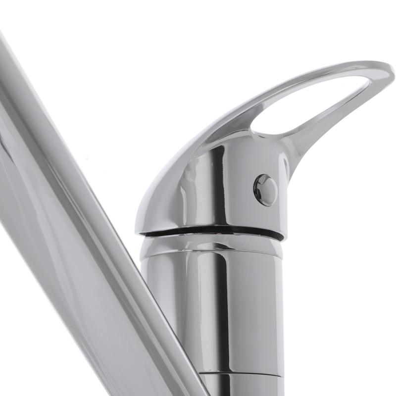 Змішувач одноважільний Haiba Premiere 004 має традиційне виконання, тому підійде тим, кому потрібний простий, недорогий якісний кран для кухні. Пристрій обладнаний невисоким виливом, який буде актуальним, якщо у вас встановлена неглибока мийка.