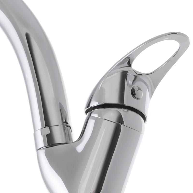 Змішувач на кухню одноважільний Haiba Premiere 011 стане знахідкою для тих, хто шукає недорогу, але якісну сантехніку. Пристрій має традиційне виконання із поворотним гусаком. Форма та висота останнього є оптимальною для глибокої мийки. Представлений кран змішувач для кухні виконаний з латуні. Цей матеріал відрізняється стійкістю до перепадів температур, не схильний до корозії. Декоративний шар – хром. Покриття забезпечує захист крана від пошкоджень та надає йому естетичної привабливості.